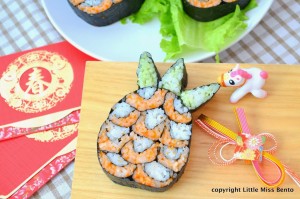 Something fun for you – Pineapple Sushi Art Roll. Pineapple in Chinese dialect language has similar sounds to words that mean wealth and good luck, hence often favoured as part of the Chinese New Year symbolism. You will find pineapple cookies, decorations etc. Yup, the Chinese love to play with homonyms (words that share similar sounds/pronounciations)!